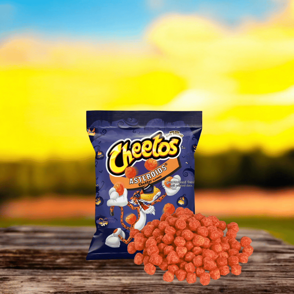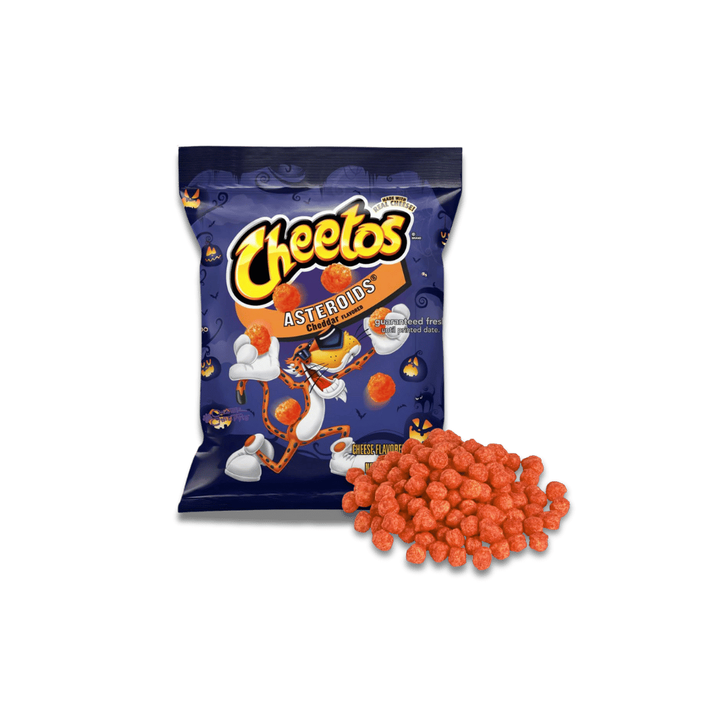 last your taste buds into orbit with Cheetos Asteroids Cheddar Flavored – the bite-sized snack that’s out of this world! These crunchy, puffed corn balls are coated in the classic Cheetos cheddar cheese flavor you love, delivering a bold burst of cheesiness with every poppable bite.