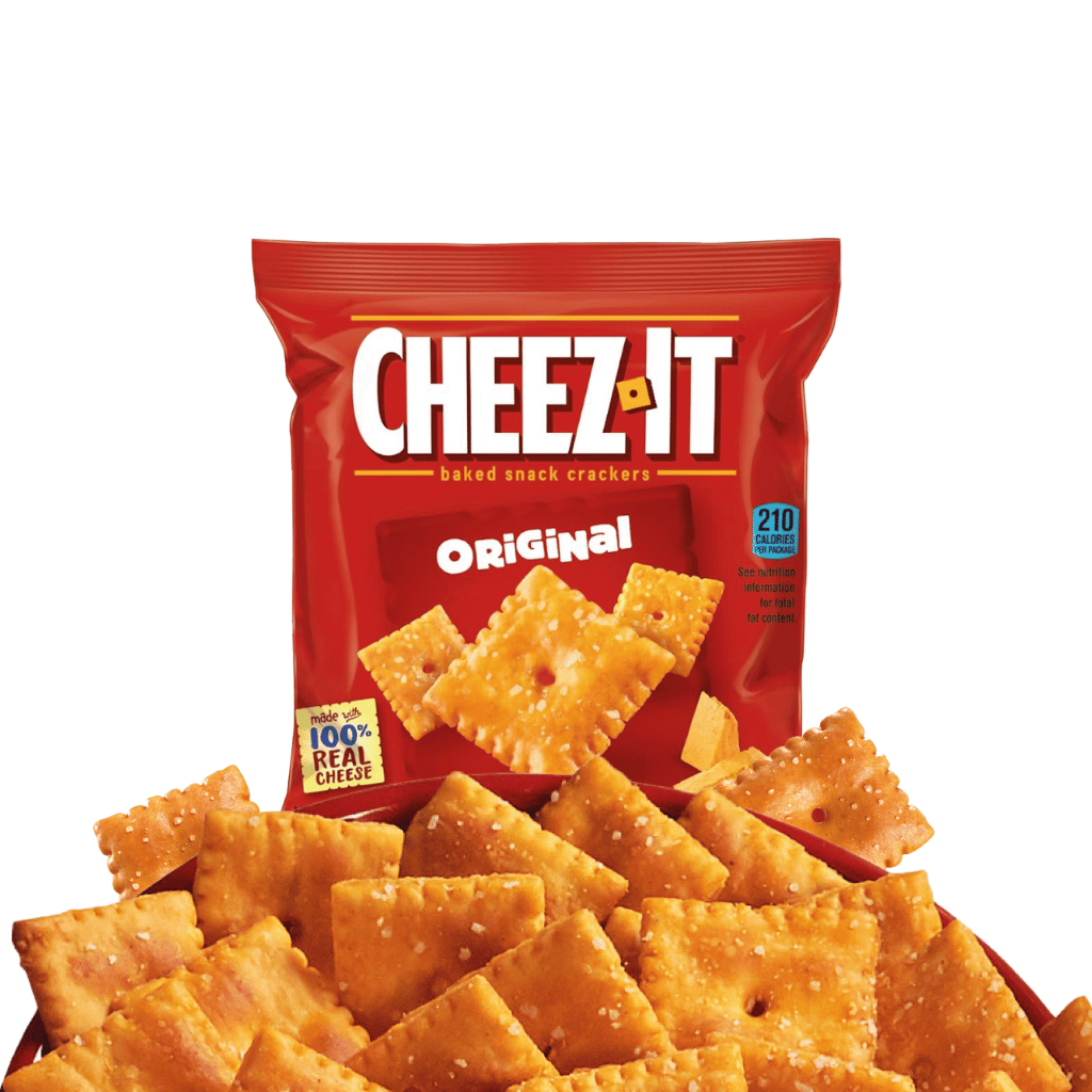 Cheez-It are thin, crispy snacks baked with 100% real cheese. Bite-sized and baked to crunchy perfection—they’re probably the Cheez-iest snack the world has ever known.