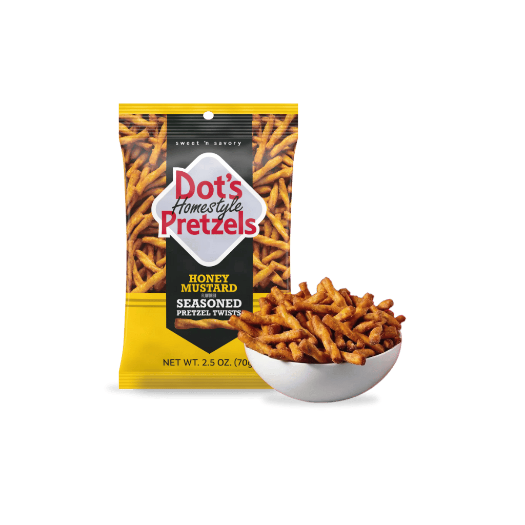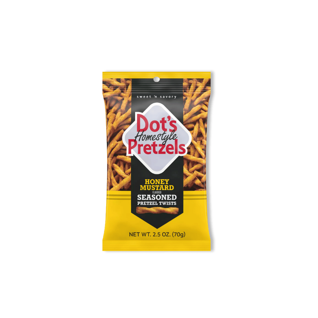 Inspired by never-ending requests from our loyal fan base, DOT’S HOMESTYLE PRETZELS Honey Mustard Seasoned twists brings you a sweet and savory blend of bold spices. Each honey wheat pretzel is baked to golden perfection with a satisfying crunch.