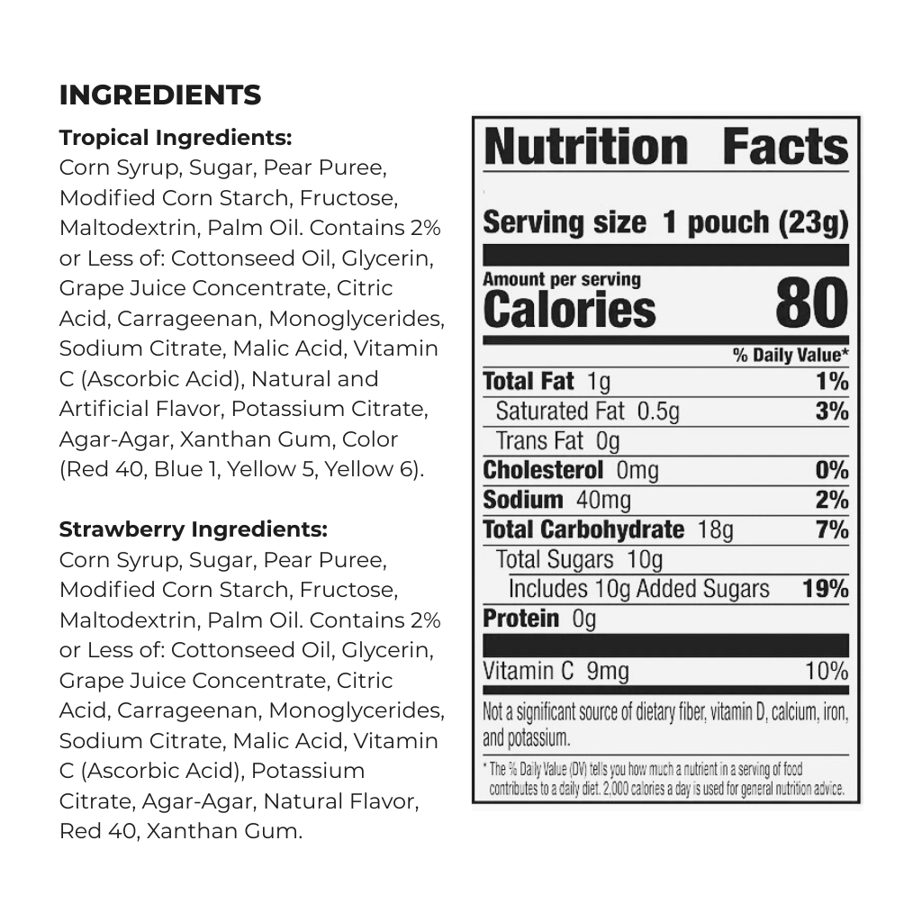Gushers Fruit Flavored Snacks are bursting with fun. Gushers have a juicy center that bursts open with yummy liquid. Enjoy delicious Gushers Fruit Flavored Snacks in Tropical flavors. With wild flavors and colors, the possibilities for fun are endless. You’ve finally found the perfect after-school snack that’s a win for you and your kids. Packaged for on-the-go convenience, Gushers Fruit Flavored Snack pouches are the perfect addition to your pantry and grocery routine and a snack every member of the family will love.