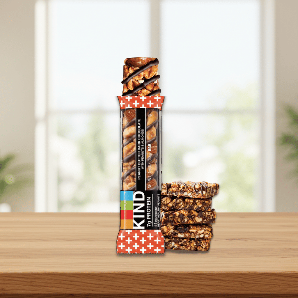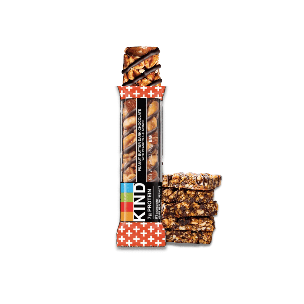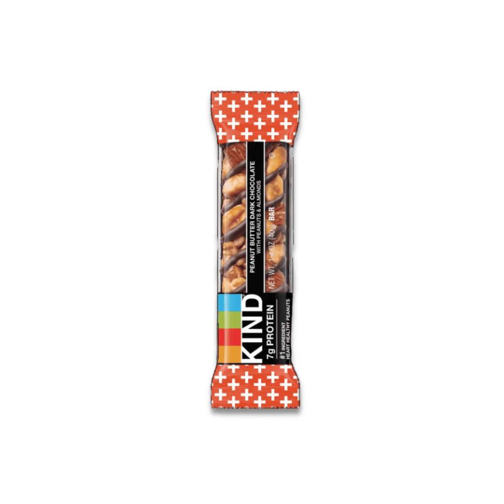 KIND Peanut Butter Dark Chocolate bars are satisfying gluten free bars packed with nuts and the taste of dark chocolate that you can take anywhere. These KIND nut bars lead with heart healthy peanuts as the #1 ingredient. This healthy snack bar combines quality ingredients like peanuts, almonds and dark chocolate to deliver a delicious taste with a little crunch. These snack bars come packed as individually wrapped snacks for a convenient option that makes eating healthy easier. It’s the perfect nutrient-dense pick-me-up when life gets in the way.
