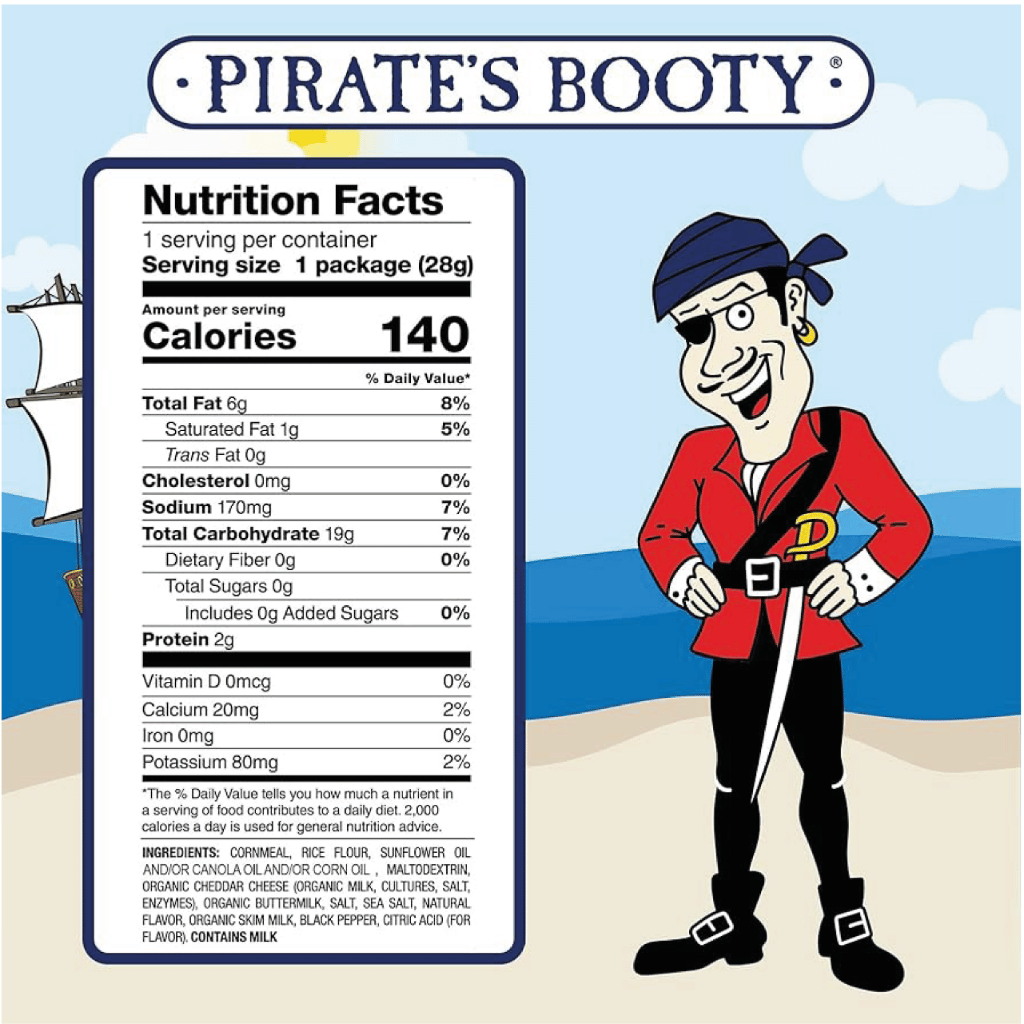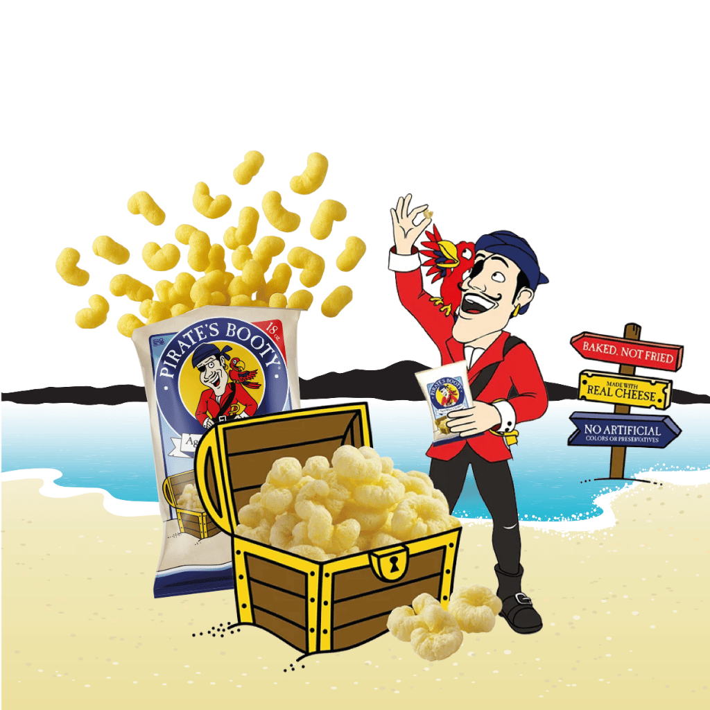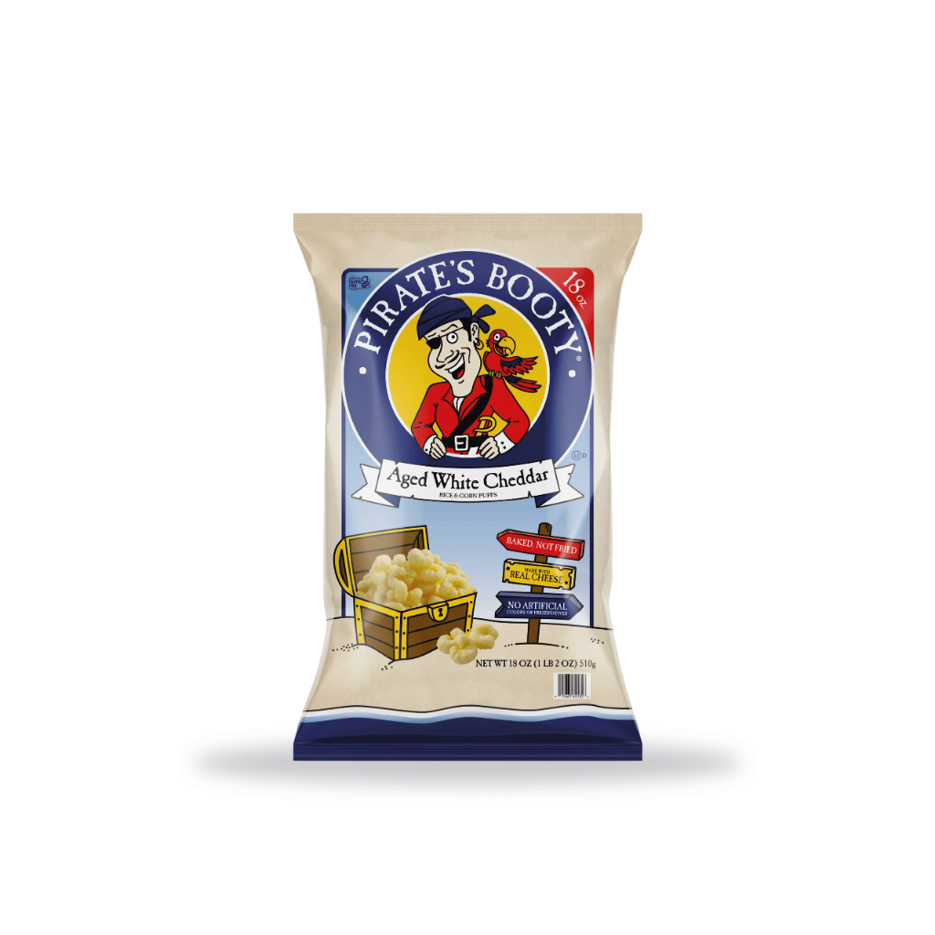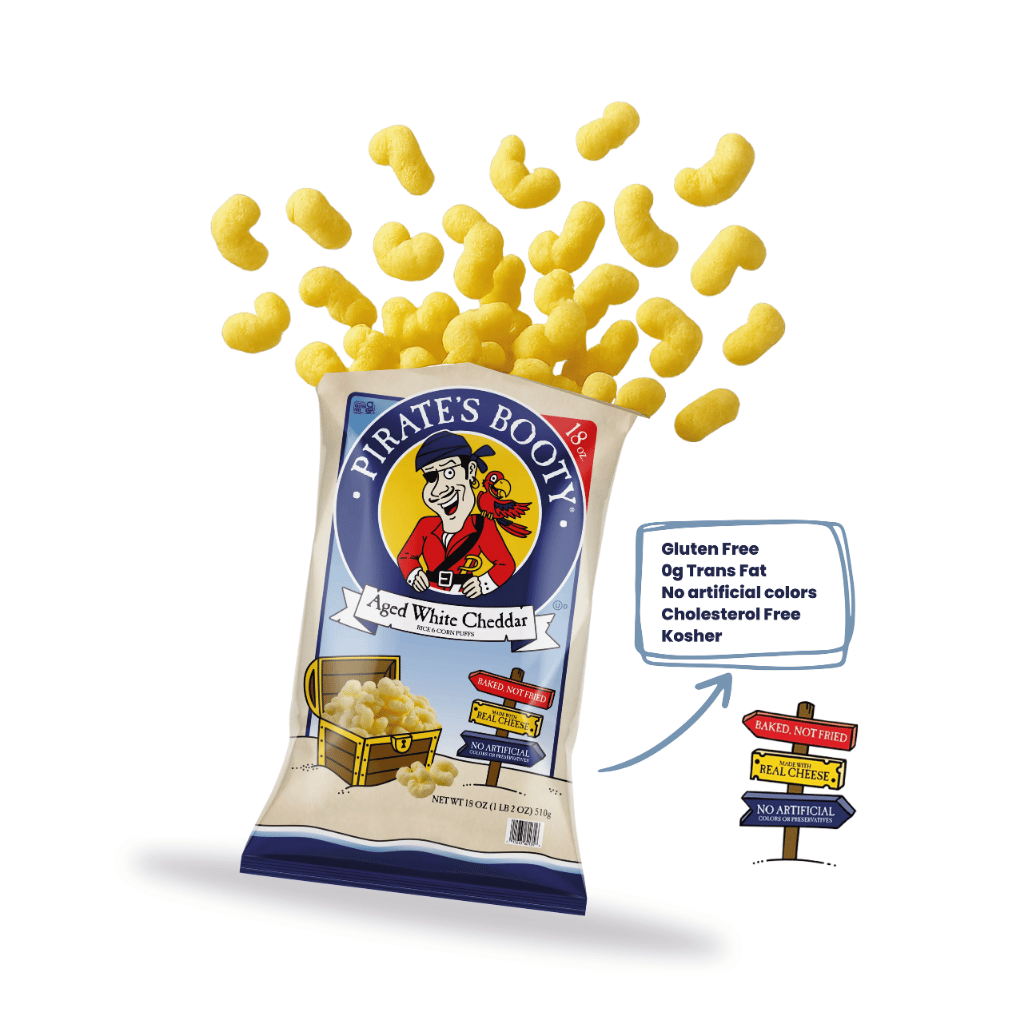 Set sail for a snack worth its weight in gold with Pirate’s Booty Aged White Cheddar! Crafted from rice and corn, these irresistible puffs are baked to perfection and blended with real aged white cheddar cheese. Gluten-free and free from artificial colors, they’re the perfect treasure for lunchboxes, snack time, or adventures on the high seas!