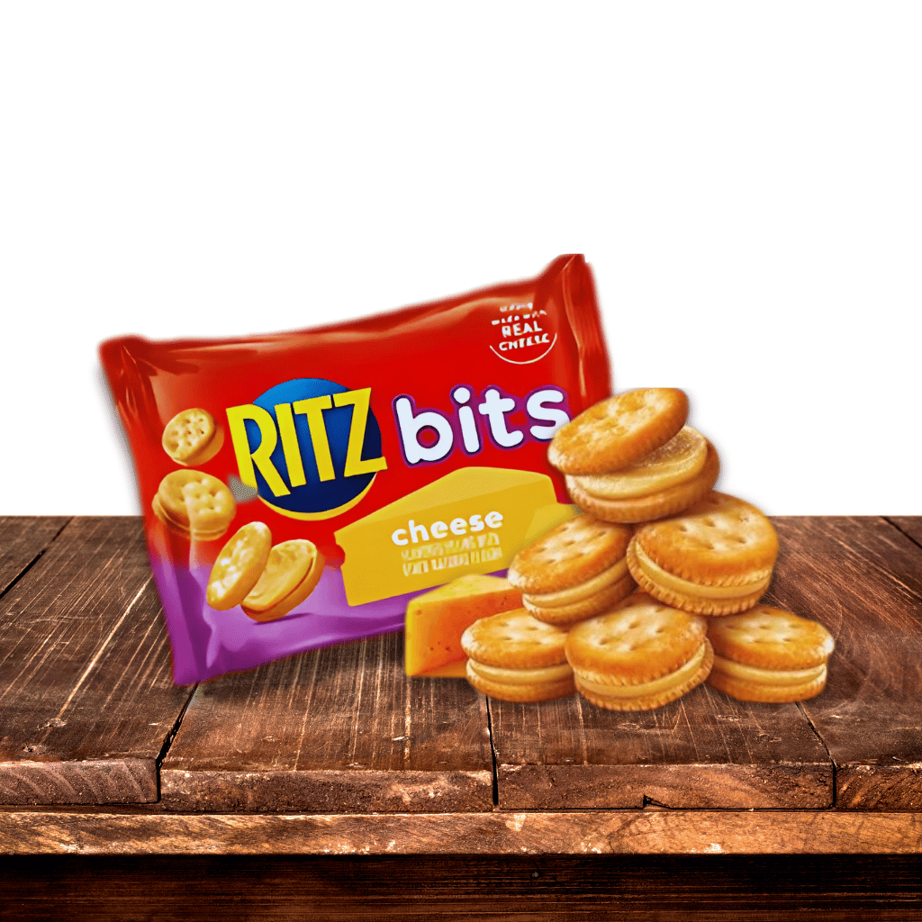 Enjoy a tiny take on the classic RITZ cheese cracker sandwiches you know and love with RITZ Bits Cheese Sandwich Crackers. The bite-sized snacks layer a delicious, cheese spread between two tiny, crispy and flaky RITZ Bits crackers.